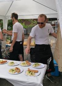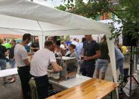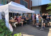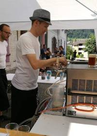 Es herrschte eine prima Stimmung am Jubiläums-Regio-Brauereitag! Neben unseren zwei klassischen Bieren (Amber und Helles) wagten wir uns dieses Jahr an eine deftiges Whisky-Coffee-Stout. Zur Überraschung vieler war der Geschmack zahmer als es seine Farbe vermuten liess ;-) Zur Stärkung wurde lokaler Fleischkäse mit Kartoffelsalat aufgetischt.